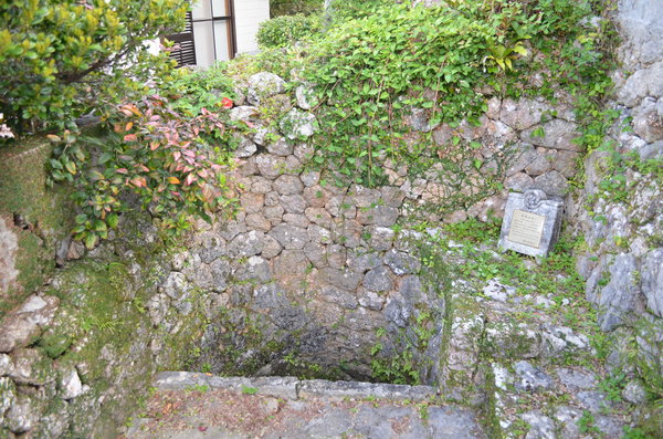 相传在琉球王府时代末期,此井所在宅第的主人新垣恒佳为庆祝得子,投私财在靠路边的宅第一角挖地下水箱,从宅第内的深井引泉水供当地人饮用。在离井口深约2.5米的内侧石壁上建有方形吐水口,水通过地下水路流至此。此井是一位慈善家为公共福利而投私财所建,具有造地下水路引入泉水之特色。" - 信息来源引用